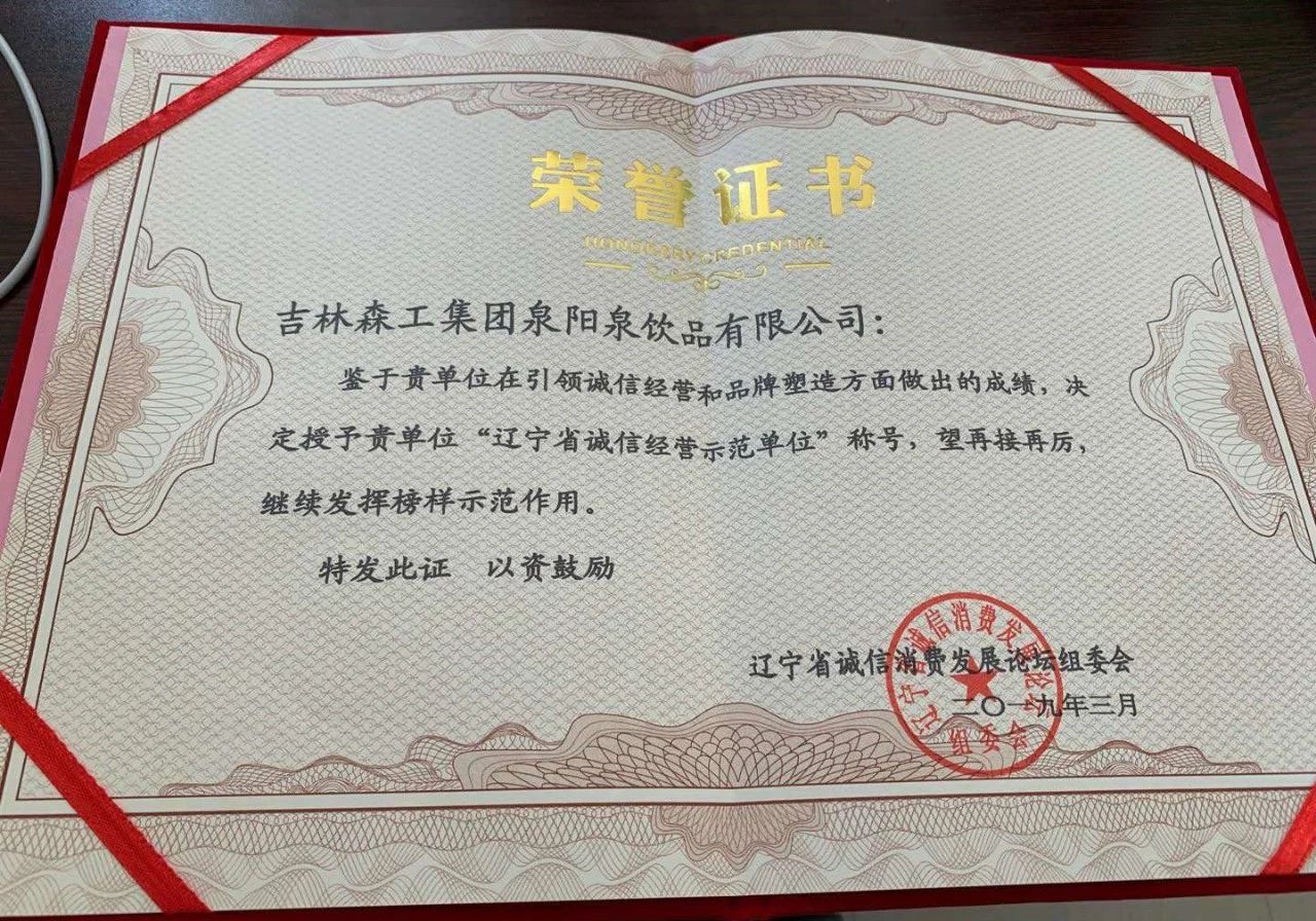 ? ? ? ? ?為了更好地貫徹落實習(xí)近平總書記在民營企業(yè)家座談會上的講話精神,以“保質(zhì)保量、誠信經(jīng)營、綠色消費”為主題,樹立一批“講誠信,負責(zé)任,守法紀(jì)”的先進典型。為企業(yè)與企業(yè)之間、企業(yè)與單位之間、企業(yè)與消費者之間搭建了一個很好的交流、合作平臺。在此次論壇中,吉林森工集團泉陽泉有限公司榮獲“遼寧省誠信經(jīng)營示范單位”榮譽稱號。